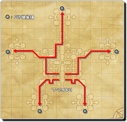 小部屋前にそれぞれ1体ずつゴラホがいる(なぜか南西だけいない)のでわかせる際には注意。