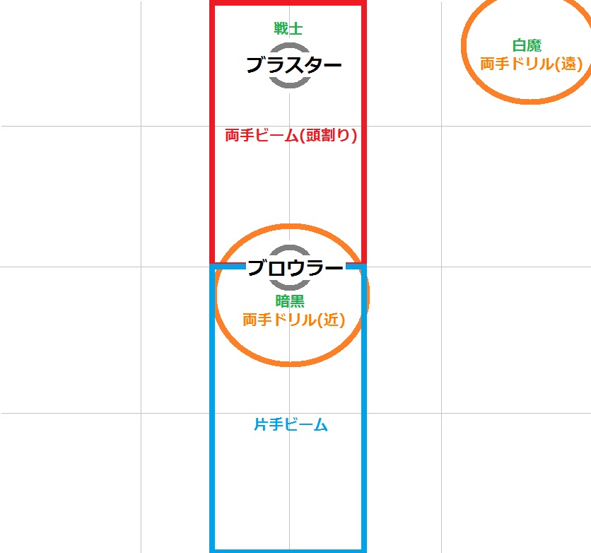 ■戦士はブラスター(北)暗黒はブロウラー(中央)のタゲを取る