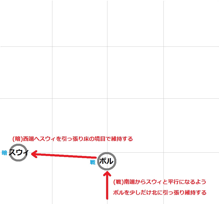 ・両手ドリル:近い方は暗黒がブロ付近に誘導、遠い方は白が北東側に誘導