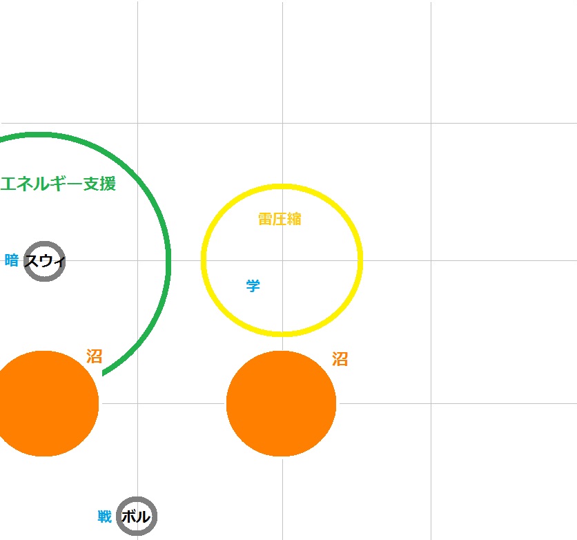 あとはこの位置で2体を最後まで削り切る。雷圧縮は中央で対象者と学者が頭割りをして処理していく。(2回目の爆発までには倒せるはず)