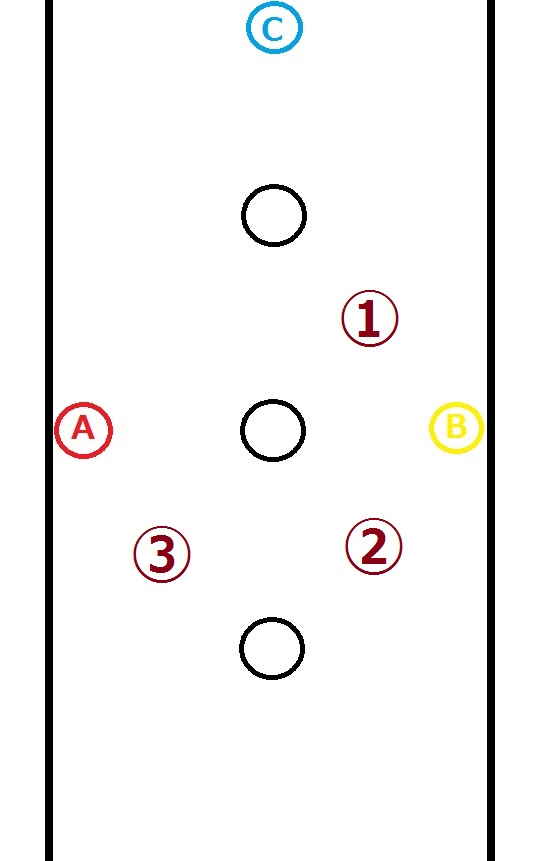 1.中央ラインのAoEを避けるために西or東端へ移動