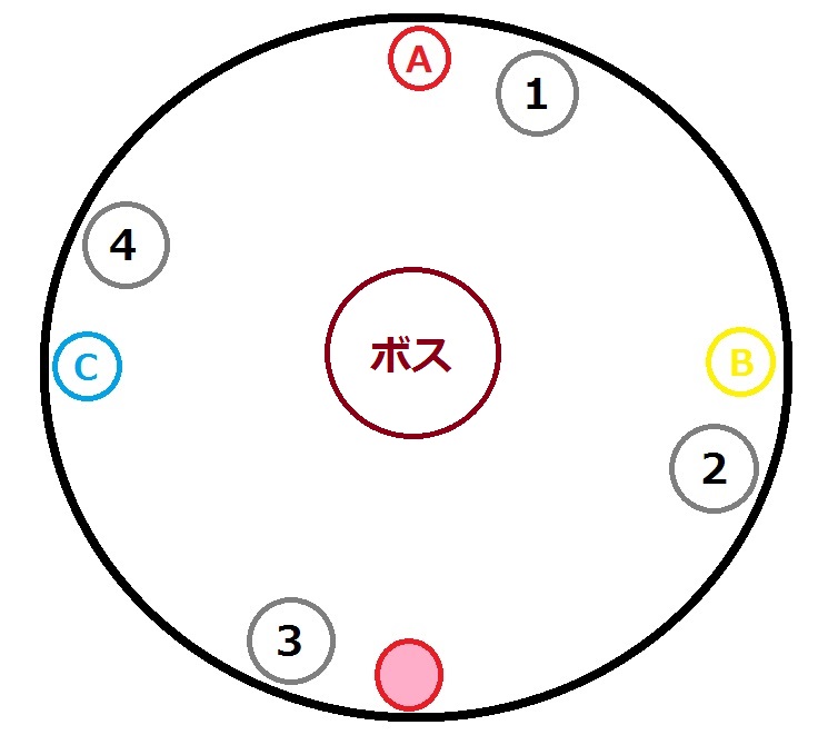 ※上の画像の場合、赤丸のどちらかにボスが出現することになる