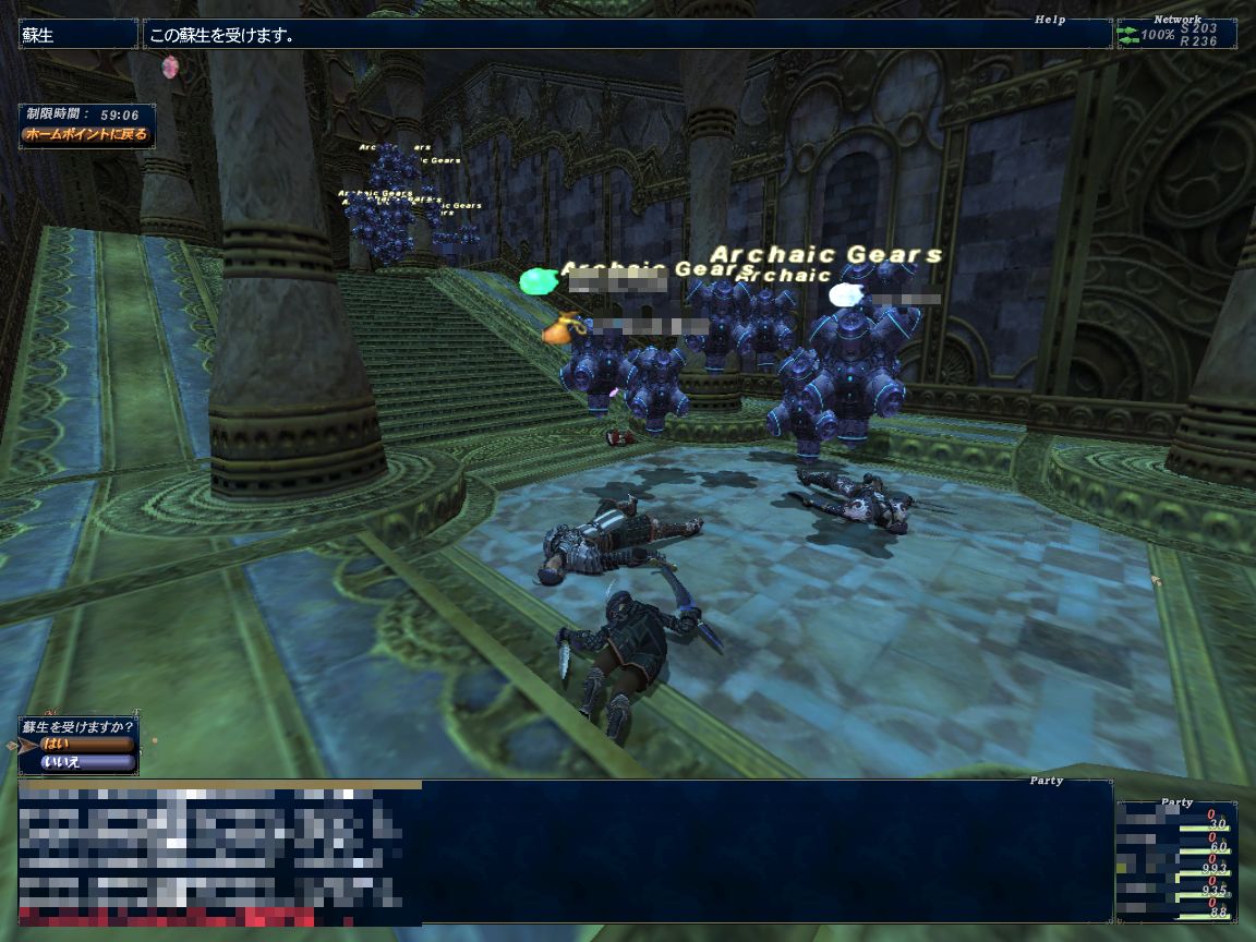 達ララでギアズを全て寝かせます。そしてログアウト。