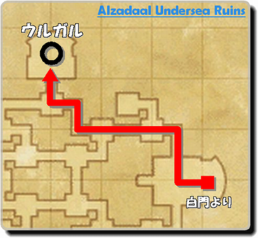 座標で言うとアルザダール海底遺跡群(H-6)になります。柱があるだけの大きい広場。