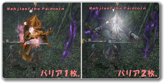 魔法ダメージを与えると壊す事が可能で、魔法のみ対応のストンスキン+物理バリアと言った感じ。