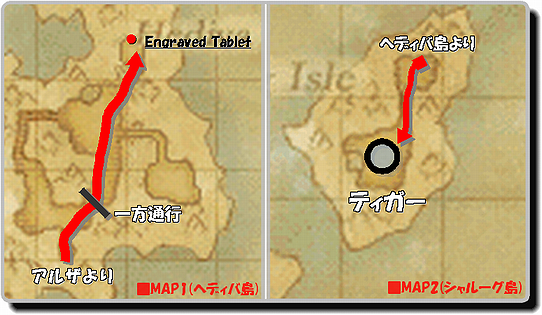 上図左のマップに出ます。(I-6)にある「Engraved Tablet」(石碑)を目指しましょう。