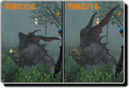 戦闘中、普段は羽根をたたんでいるのですが、上図の様に30-60秒間隔で羽根を広げます。