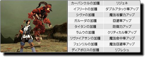 召喚獣の力を抑える代わりに、召喚獣から加護効果を得られる。