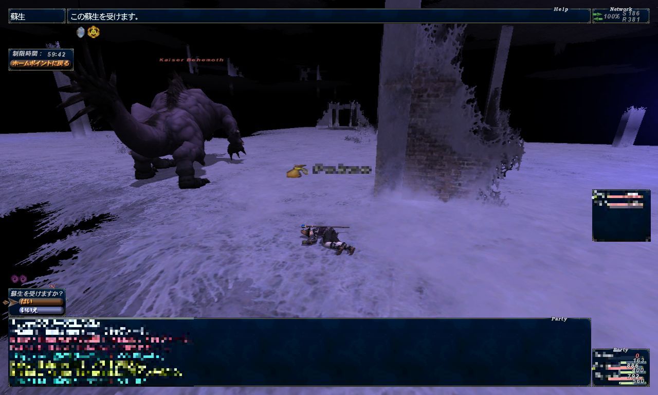 他にも欲しい素材があったので、北ではなく西へモ/忍 忍/戦 赤/黒の3人で突入。赤で参加。