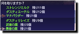 今回の中身は上の様な感じで、中身は6種固定。回復系3種 + その他3種といった具合。