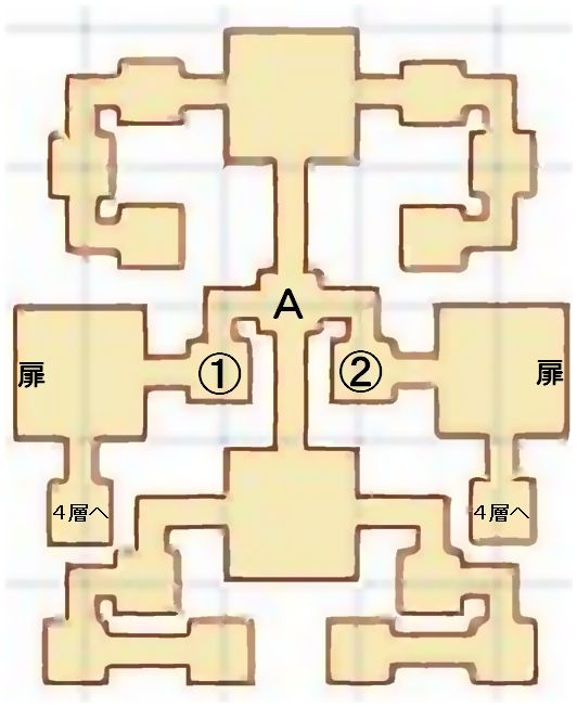 これで上図のどちらかの「扉」の位置に扉がわくので突入。