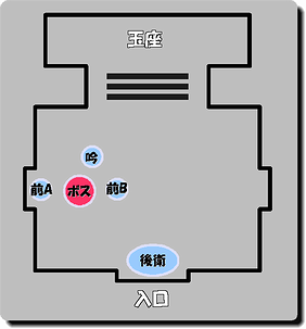 他の後衛は入口の壁の方に固まります。弱体はスリップ(ディア/毒/精霊弱体等)のみでOK。