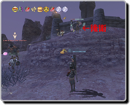 上図の崖の辺りに後衛が立ち、周りをナがマラソン。
