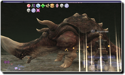 ・アシッドブレス ⇒ 前方範囲 蝉貫通 [水属性ブレスダメージ(200cap) + STRダウン(-10)]
