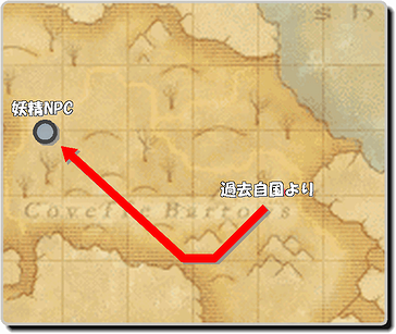 そこに妖精NPCがいるので、話しかけた後、選択肢を選ぶとNPCの東側にNMがPOP。