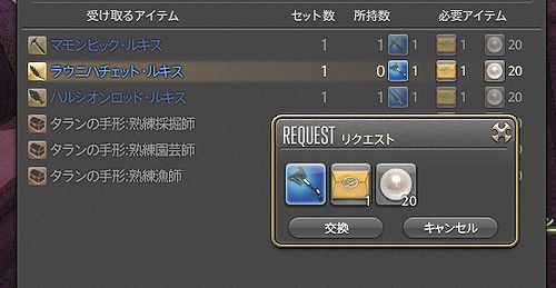PLLを見ているとパッチ2.55で真成の週制限が外れると突然の発表。最初はビックリしたけど、確かに時期としては来てもおかしくない時期ではあった。結局制限が外れるまでバハ胴は取れなかった…(一応まだ2週程猶予はあるが)。その後インして、ムーンストーンが20個貯まっていることに気づき、残りの素材を軍票で交換して園芸用ルキスをゲット。これでギャザクラ全てのルキスが揃い一安心。昨日交配したチョコボの確認にいくと加速は★1で持久は★2なものの、最高速・体力・適応が★4、更にスタダを覚えている新羽が産まれていたのでこれを育てていくことに決定。途中チョコダッシュも覚え、結構理想的なステに仕上がり満足しつつログアウト。