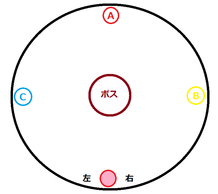 マーカーは上図のように置いたものとします。時空潜行の時はボス出現位置を12時とします。