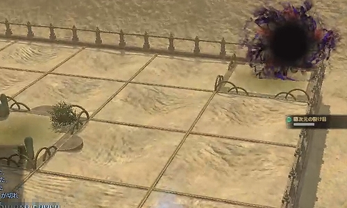 「ブラックホール」でエリアにいくつかの黒い玉が出現。振れると大ダメージ+被ダメ上昇デバフが付与されるので、MTは邪魔にならない位置へ誘導する。同時に「真空波」がくることがあるので、吹き飛ばされて落ちないよう、注意。