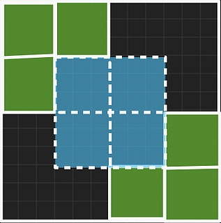 図で表すと、上のような形になり、外周のどの位置にPOPしたとしても必ず4枚の青色パネルのうち1枚に安置が出来る。
