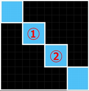 フェーズ3では上図の配置で青色のパネルが4枚設置される。主に使うパネルは①と②のパネル。以降の説明で①や②で表したものは上図の配置のことを言う。