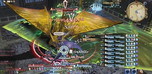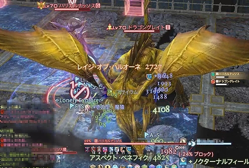 ブレスは口からというより実際はドラゴンの中央部分から扇状に広がるので、正面にいなくてもドラゴンと重なる形にいると被弾する恐れがある。タゲ持ち以外は背面寄りに立っておかないと危険。