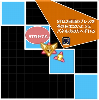 STはPOP後すぐにタゲを取り、②のパネルの南東側に立ち、「ドラゴングレイト」のブレスを外側へ誘導させる。