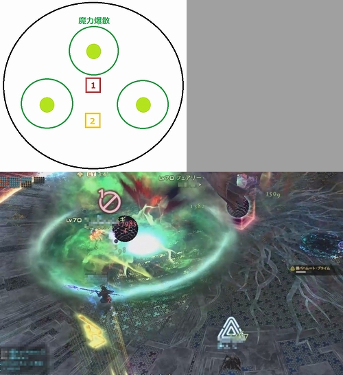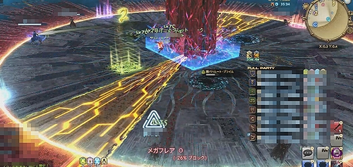 以上の流れで、全員がうまく「塔」を踏めれば爆発は「メガフレア」となり1万前後のダメージとなる。一人でも踏めていない「塔」があれば「メガフレアストライク」となり全体に即死級ダメージ+ダメージ低下を受け、ほぼワイプ。