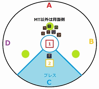 が担当するようにする。これはダイブの散開位置から出来るだけ近い位置を意識した配置になっている。