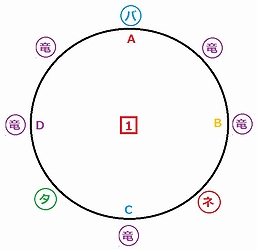 ・反時計回りに数えて1つ目を白、2つ目を暗、3つ目を竜、4つ目を召
