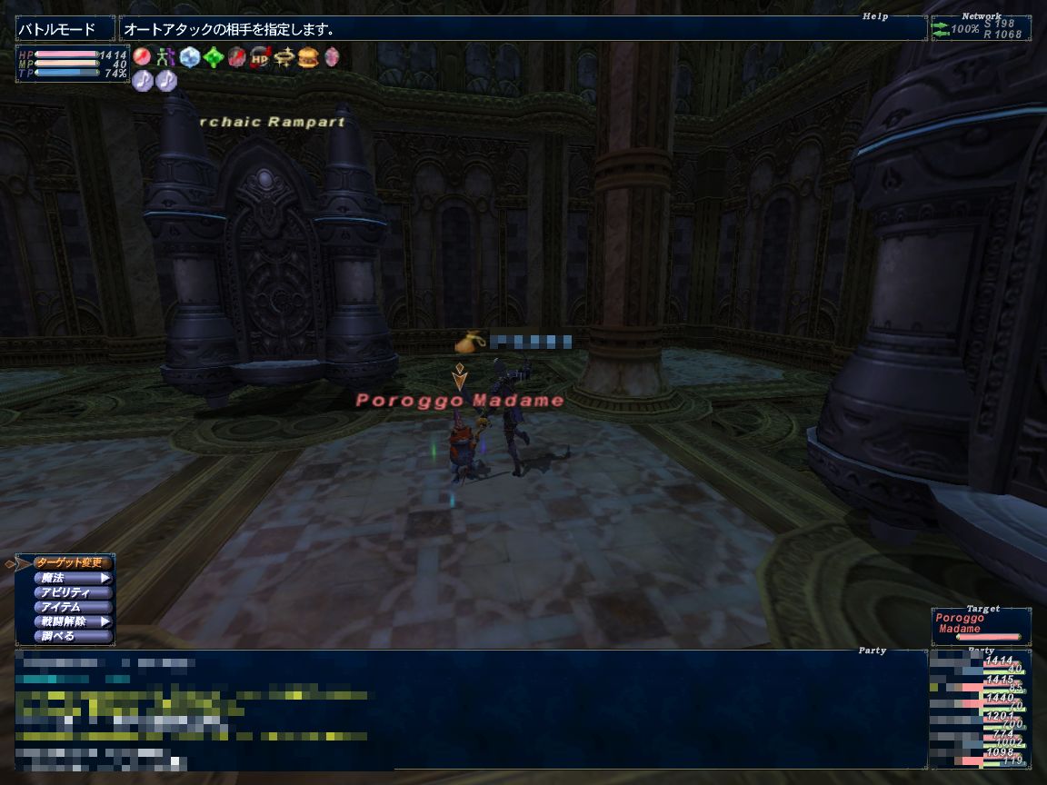 小部屋3部屋終わったところで全員のHP/MP、3人分のステ揃いきったのでワープ。