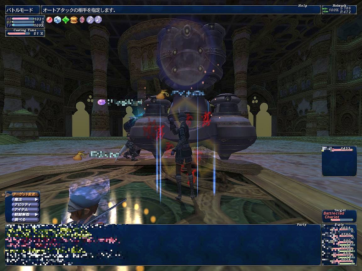 殴るのは忍・モの2人。後はいつもの位置・距離に立ってディスコイドくればケアルガ2で回復。