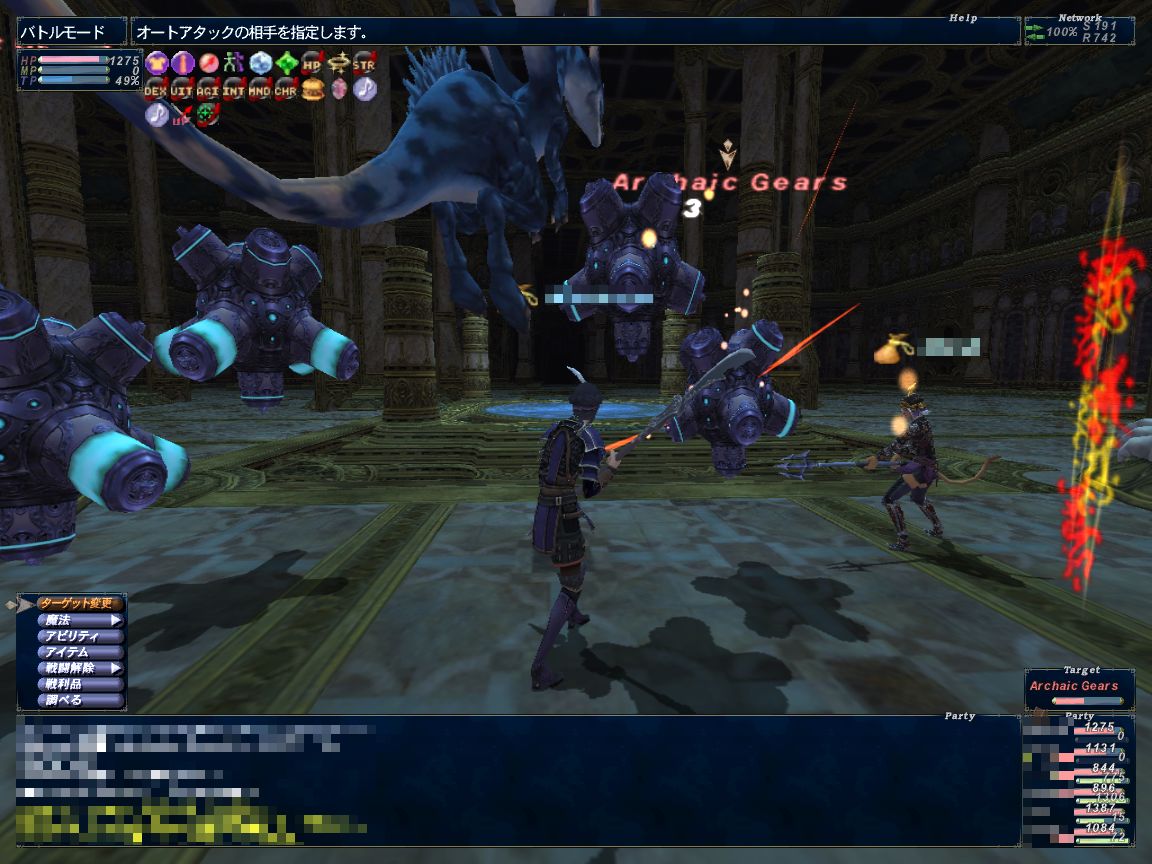キキルンが終わったらお化けNMの前に白のサポを取っておきたいので西小部屋のギアx3を倒しておきました。