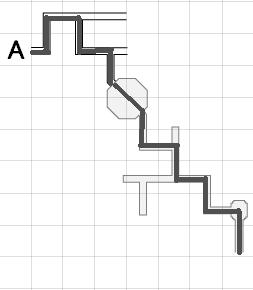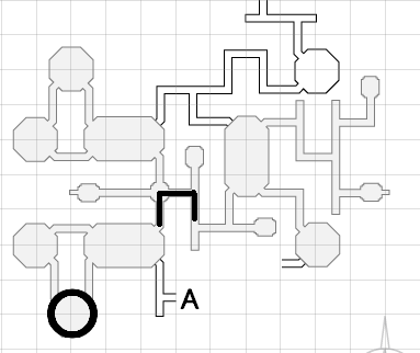 まず、フォミュナ水道に入ると↑のマップに出ます。黒線を辿って、Aの位置を目指します。