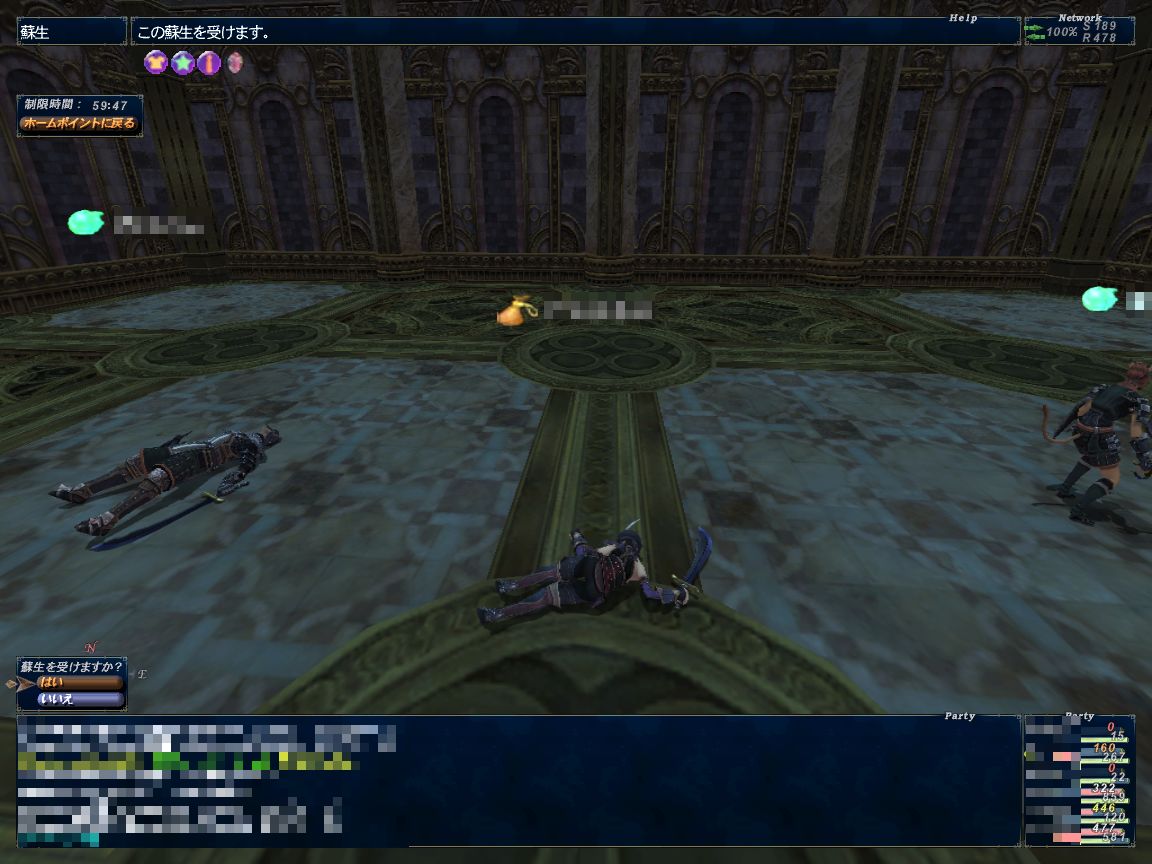 こんな感じで前半終了、途中の中央部屋はからまれない様に壁際を歩いて回避。