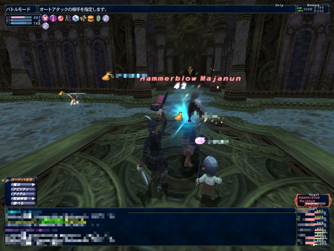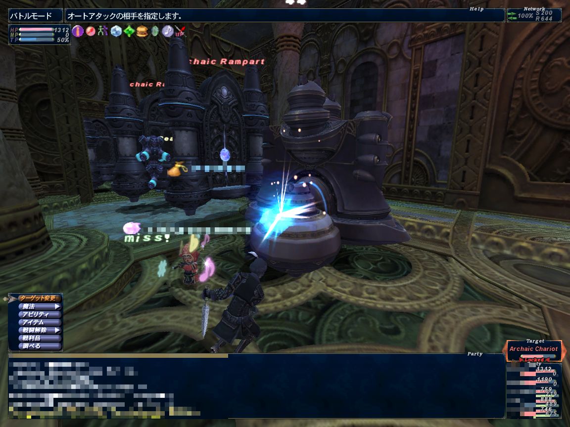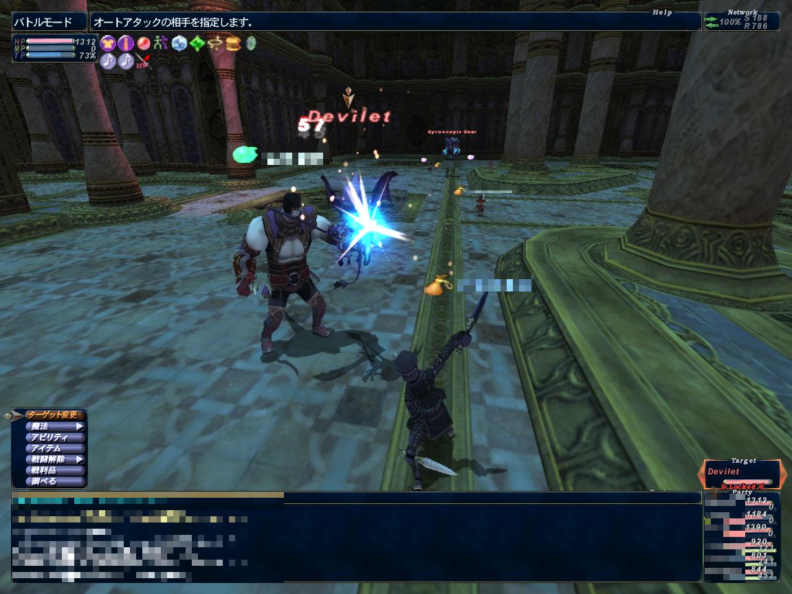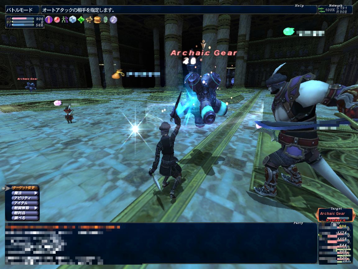 ここでPTを2つに分けます。モ・赤の2人でギアNMを、忍・シ・赤の3人でインプと戦闘。