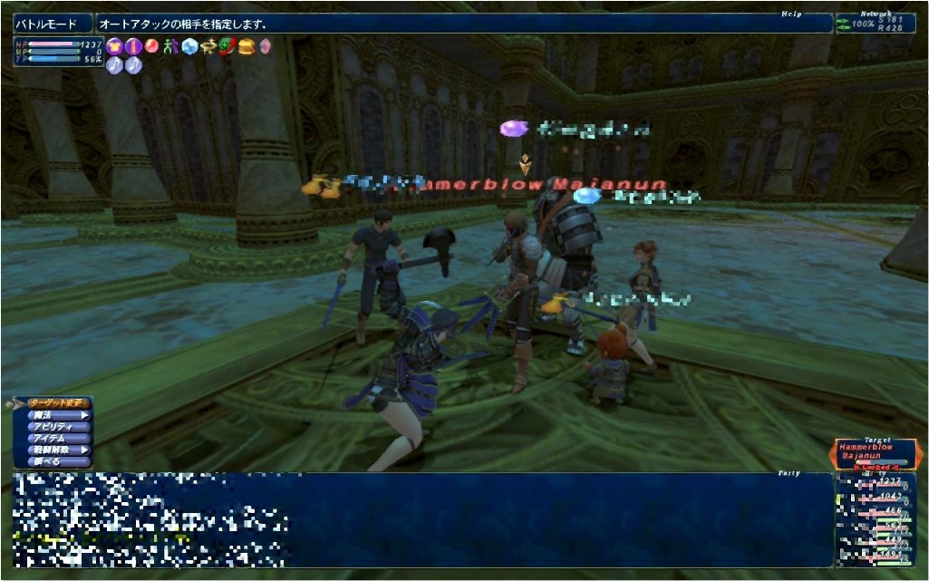 ここでも全員で殴っていく訳ですが、さすがにこの辺りからはMPきつい場面も出てくるのでインプの時だけ後衛は離れたり、フォモルでもMPがきつくなってきたりしたら下がってバラもらったりするようにします。