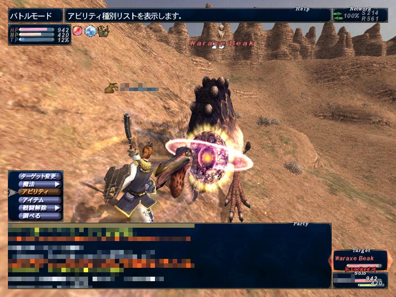 [ ソニックナックル:格闘◆D+6 隔86 命中+2 追加効果:風ダメージ モ Lv22 Ra ]