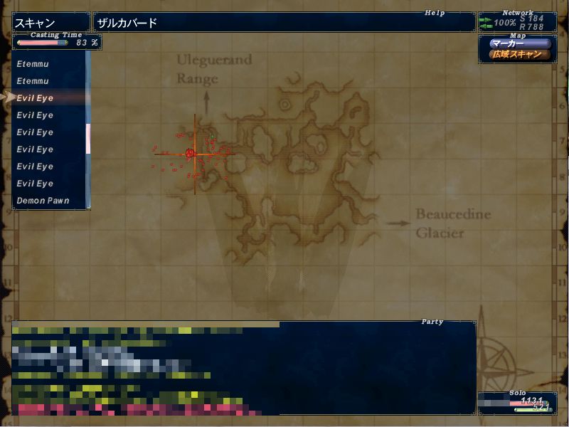 ↑左図のような感じで目玉が6体います。広域スキャンをした結果が右図。