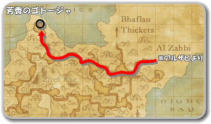 ここまで来るのはアルザビからチョコボで来るのが良さそう。徒歩だと少し遠め。
