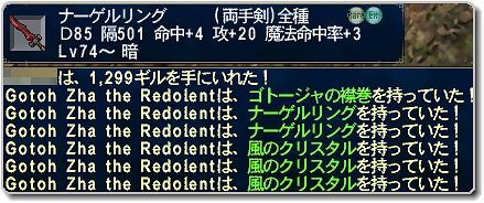 リゲイン持ちで頻繁にwsを使う。風・光に耐性があり、氷が弱点。