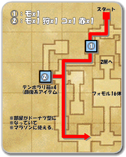 ⇒上図①の部屋にモタイプフォモルが1体だけいるので倒しましょう。