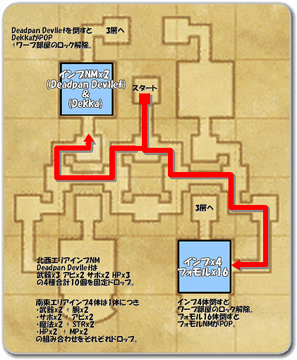 ⇒北西大部屋に入ってすぐの所にインプNM(Deadpan Devilet)が1体だけいるので