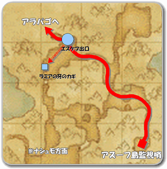 アラパゴに入ってから「ラミアの牙のカギ」が1個必要なので
