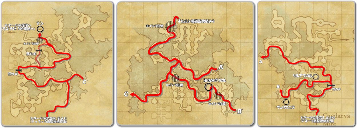 西ではなく北へ進めば途中でリルアプカルをやる事も可能。その後Aを目指し、そこから中央マップへ。