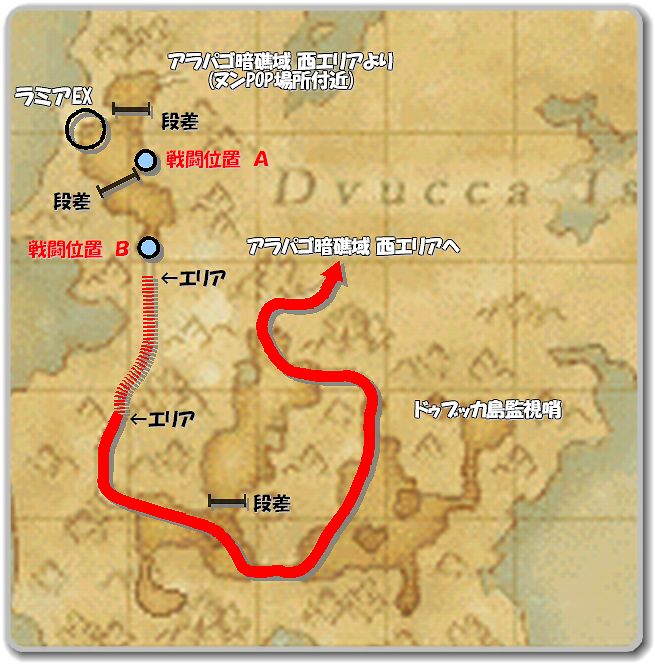 ドゥブッカ島監視哨から上図の「アラパゴ暗礁域 西エリアへ」まで移動。