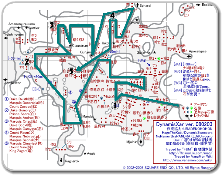 ⑤は囮は北西へ、やれる分だけ抜いたら東方面(赤戦詩NM砦前辺り)をキャンプに数を減らします。
