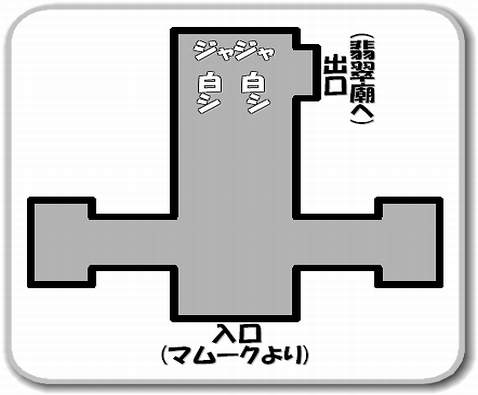 ジャジャ部屋は右図のような感じの間取りで、奥の台座にジャジャが一体だけいます(左図)。