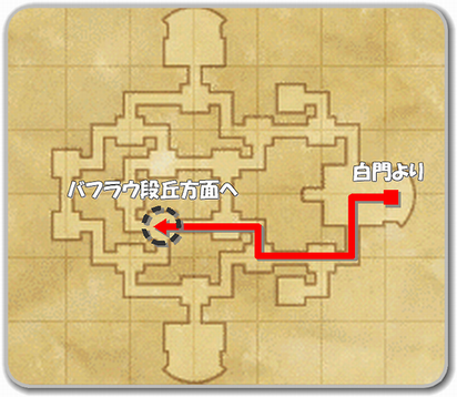 白門からナイズル島監視哨に飛んだら上図左に出るので、丸で囲んだ場所からワープ。