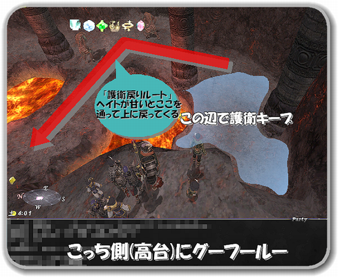 そのまま高台でキープすると狭すぎてグーフールーのwsを食らう恐れがあったり、