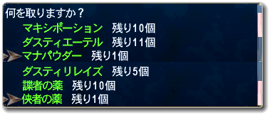今回の中身は↑のような感じ。回復系は惜しみなく使っていきましょう。